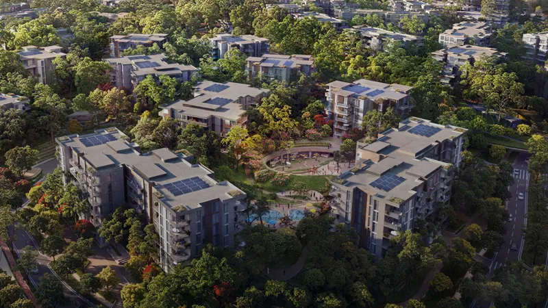 Serra at Ghaf Woods in Dubailand, developed by Majid Al Futtaim, is an eco-friendly paradise offering a range of 1, 2, and 3-bedroom apartments and duplexes. This globally renowned developer has crafted a unique living experience amidst lush greenery, lifestyle amenities, and various attractions. This family-centric neighborhood promises an exceptional lifestyle, providing serene privacy and a holistic living experience that seamlessly blends with bespoke living spaces and luxurious conveniences. Inspired by nature, Serra at Ghaf Woods embraces its residents with a refreshing and invigorating environment. The architectural design exudes minimalistic elegance and contemporary excellence, reflected in every detail. The community comprises 10 low-rise buildings surrounded by green landscapes, walkways, and common amenities. Serra apartments boast features that enhance the living experience for everyone. Residents can enjoy an infinity pool, a forest pool, a kids’ pool, play areas, a therapeutic garden, a fitness station, a multipurpose lawn, and an outdoor station. The community also offers cascade gardens, existing Ghaf trees, a central forest, a sunken forest, and a welcome forest, providing ample recreational opportunities for quality time. Located on Sheikh Mohammed Bin Zayed Road, next to Global Village, Serra at Ghaf Woods offers convenient access to wellness, recreation, entertainment, shopping, and dining options. This naturally enriched community is designed to foster a healthy, playful, relaxing, and thriving lifestyle.