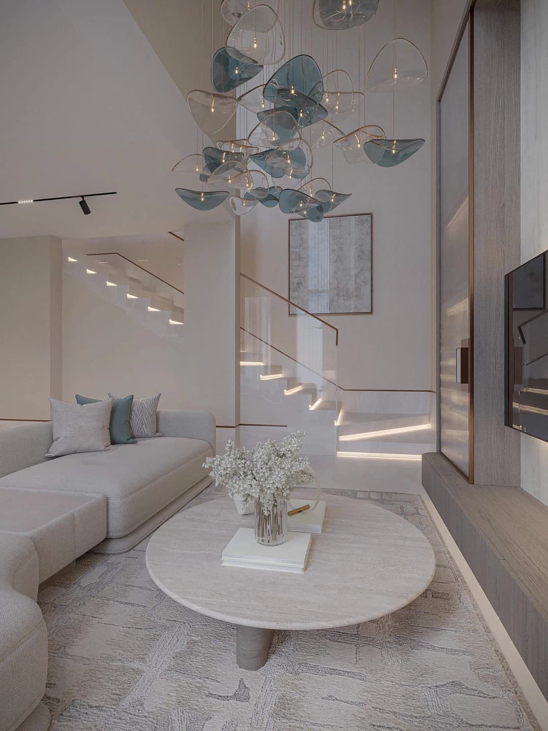 The interiors of 241 Waterside are shaped by a premium material palette that emphasizes natural textures and luxury craftsmanship. Finishes include high-quality stone surfaces, refined wall treatments, and elegant color tones that create a calm and modern atmosphere. Kitchens and household appliances feature Miele and Smeg, providing reliable performance and a high-end user experience. Bathroom fittings and hardware come from Gessi, combining precision engineering with timeless minimalist design. Homes include Orvibo smart home automation for lighting, climate, and security controls, ensuring modern convenience integrated seamlessly into the living space.