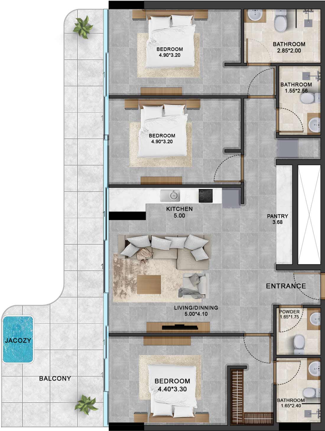 The development design transcends mere aesthetics to evoke a sense of serenity and harmony inspired by the majestic sea waves. Drawing upon elements of fluidity, curvature, and dynamic forms, the conceptual design seamlessly integrates with the surrounding landscape, creating an environment that is both visually captivating and functionally efficient. Each residence exudes timeless elegance, offering residents a sanctuary where they can unwind and recharge amidst the beauty of their surroundings.