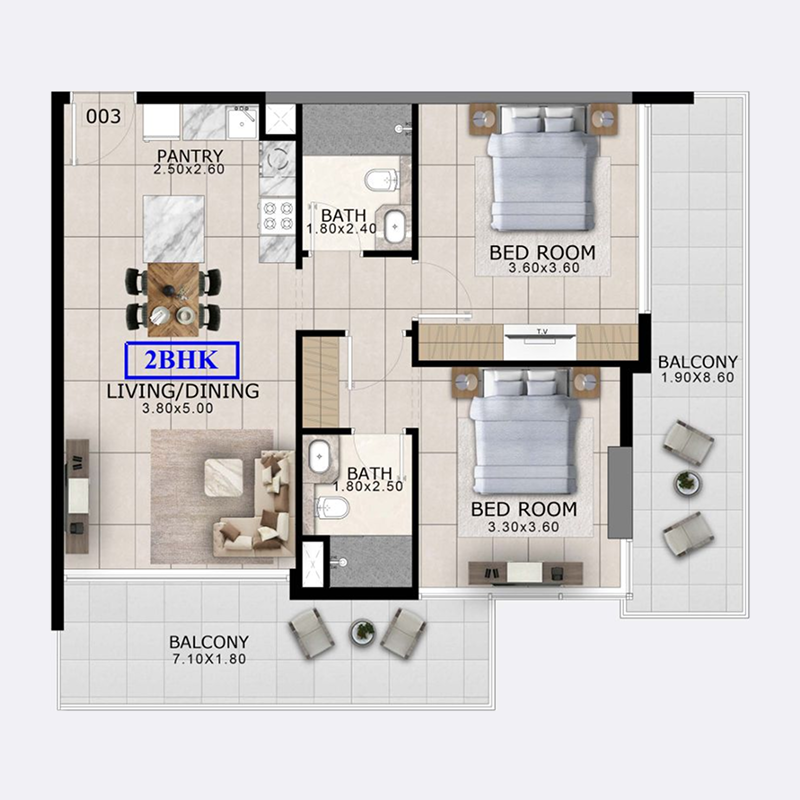 • 2 Bedrooms