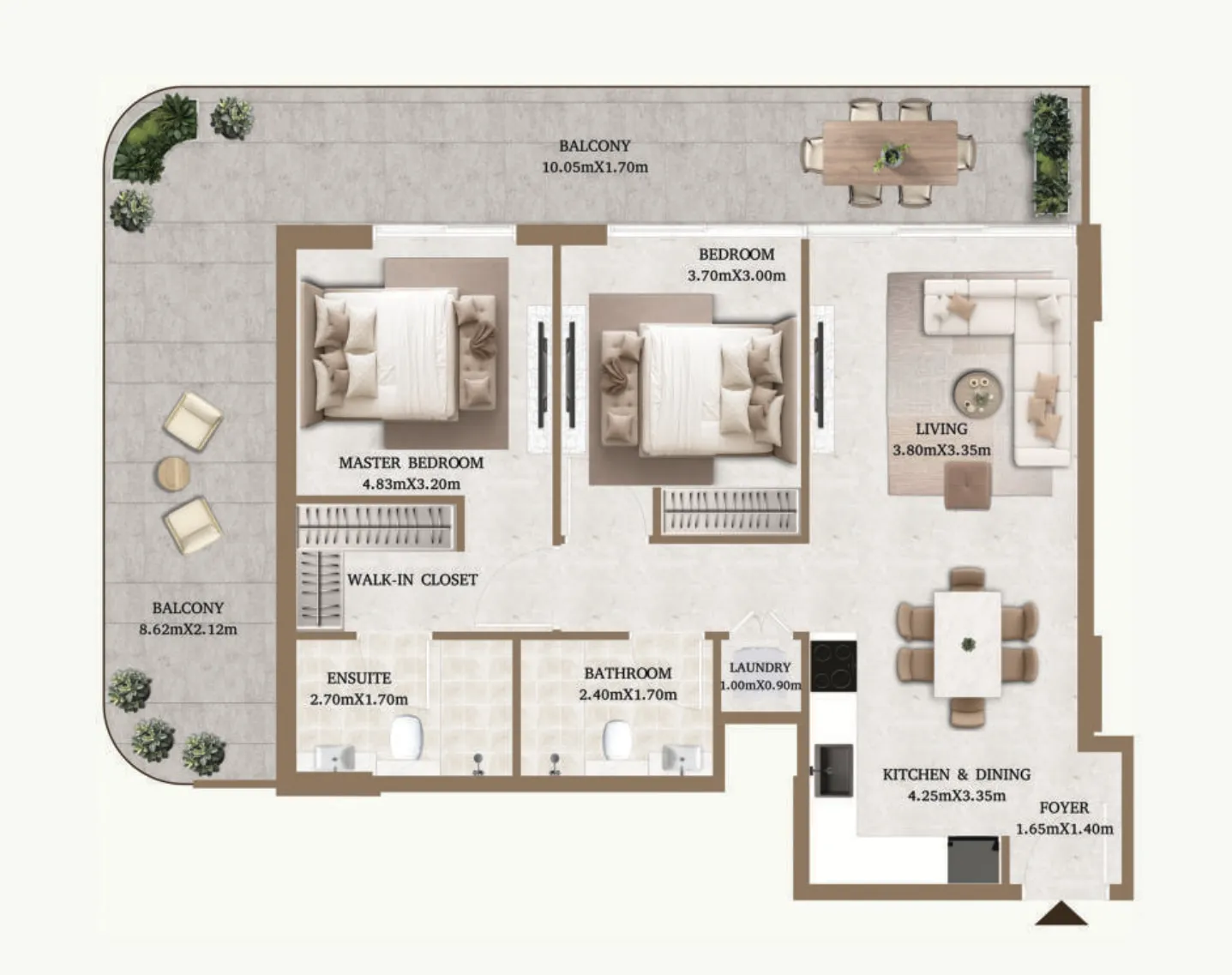 Inside each residence, fully equipped kitchens, luxury finishes and high-quality materials create a warm, polished and practical living space. Modern systems like advanced air filtration and a potable water system add comfort and peace of mind. Every room is crafted with care, ensuring refined design, smooth layouts and a premium feel from the moment you enter.