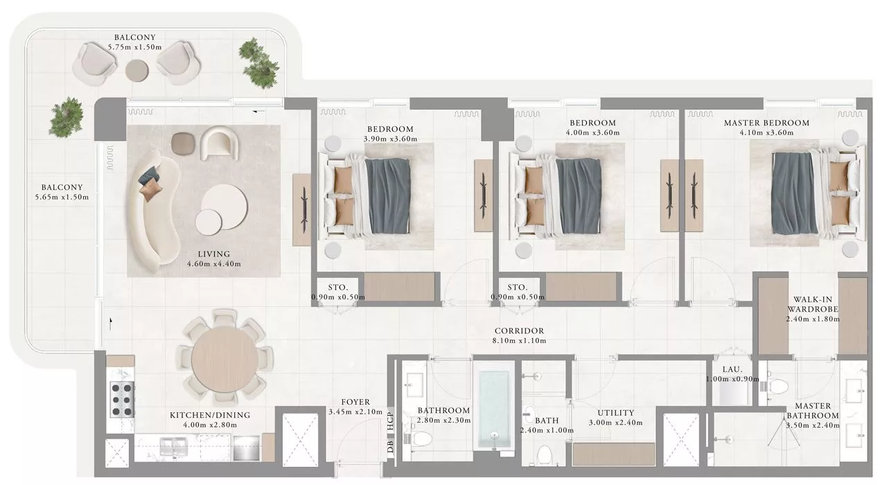 The properties measure from 814 sq. ft to 2,776 sq. ft. Each property is complemented with 1 or more balconies and a walk-in closet. Owners of 3-bedroom duplexes will additionally have a maid’s room and a storage room at their disposal.