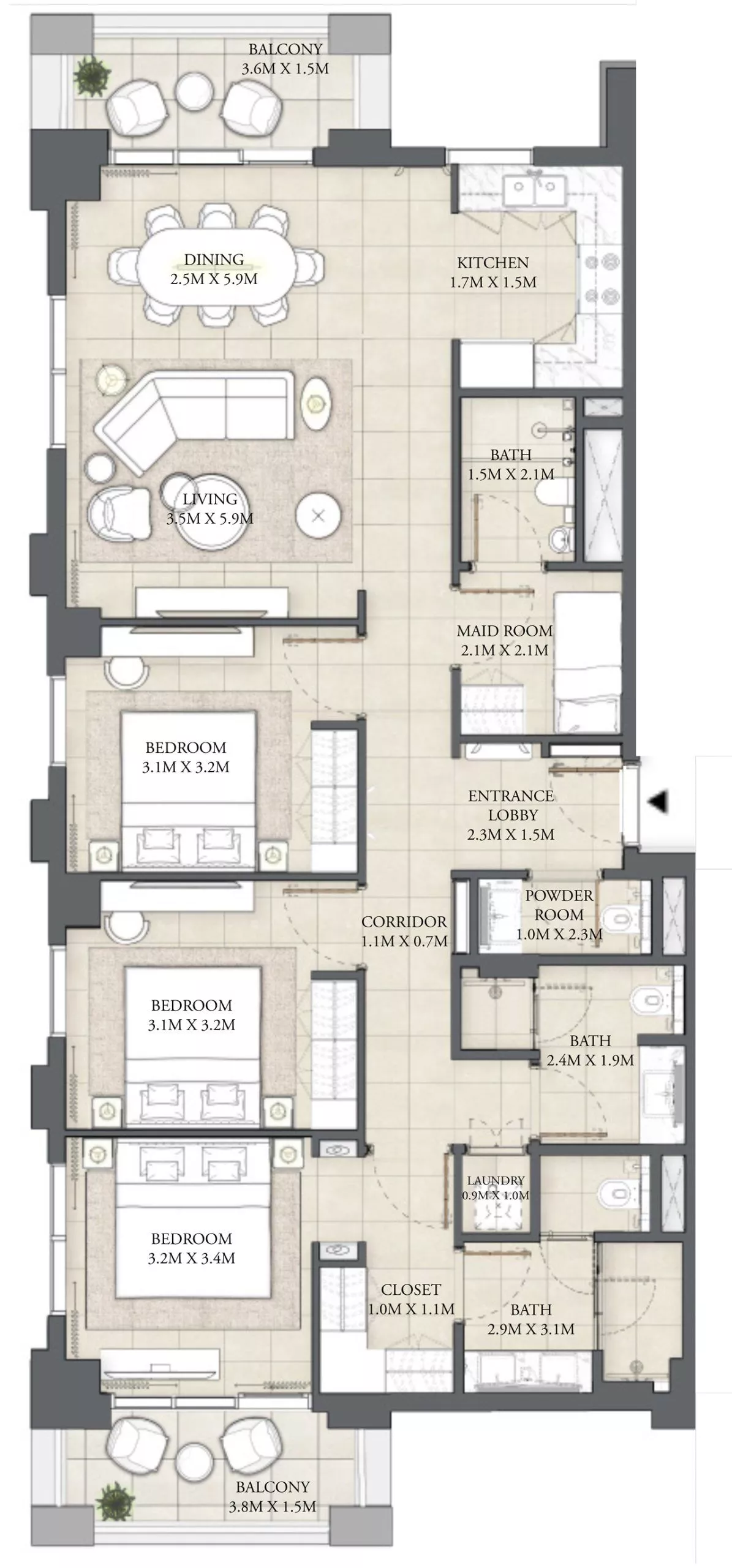 • 3 Bedrooms