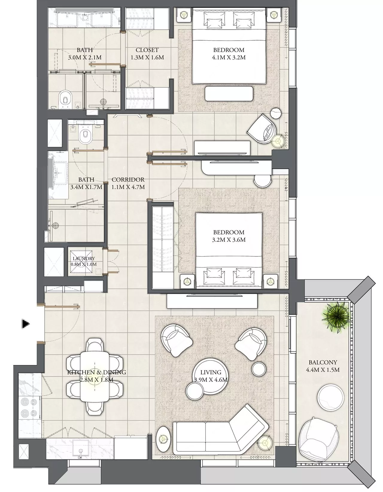 • 2 Bedrooms