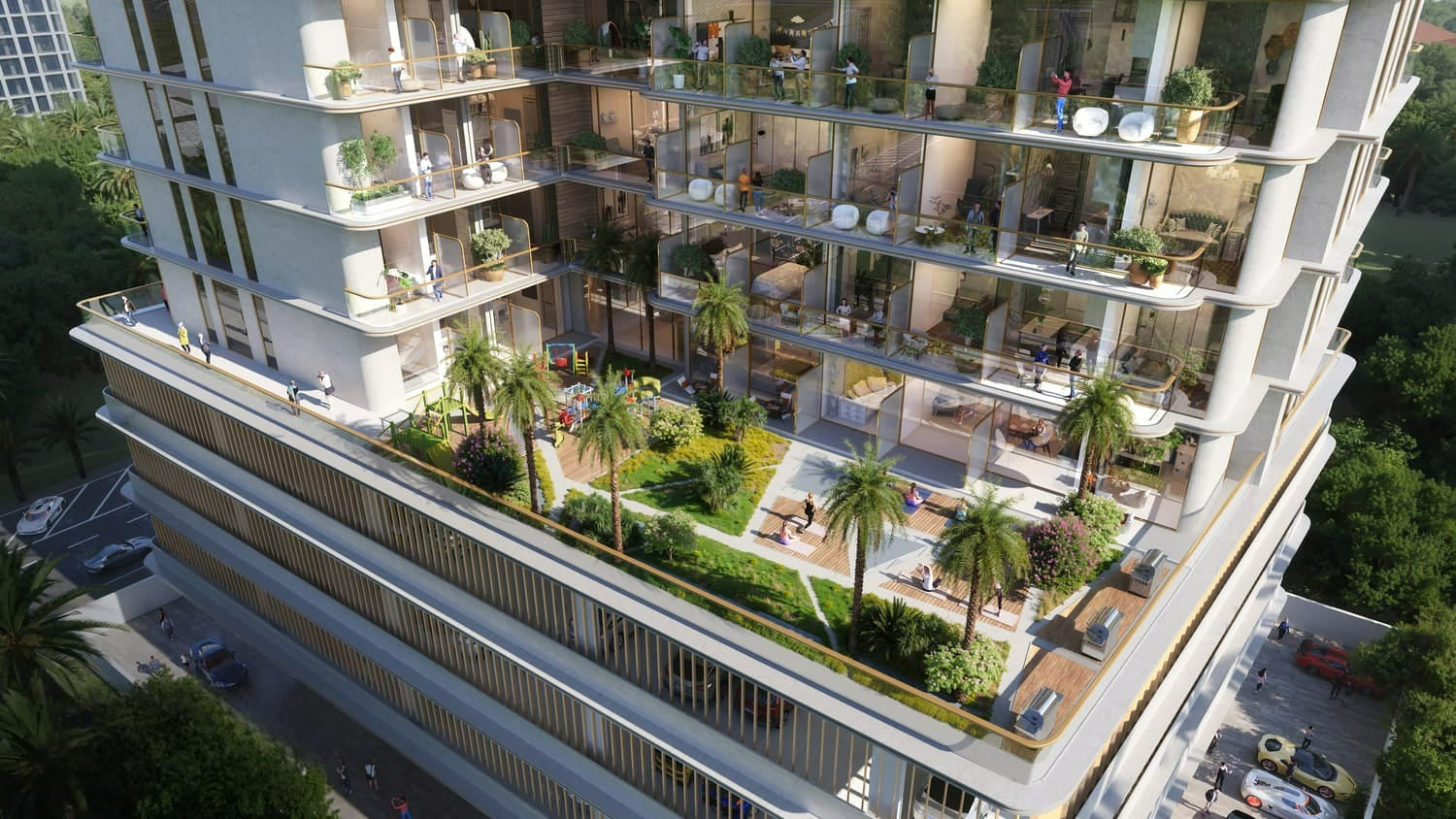 Residents will enjoy an exclusive range of amenities including an infinity pool with panoramic skyline and sunset views, a state-of-the-art gym, jacuzzi, sauna, and dedicated areas for yoga, sports, and BBQ gatherings. Families benefit from separate pools for adults and children, as well as kids’ play zones, with shopping, schools, hospitals, and parks just steps away, ensuring every need is met within this vibrant address.