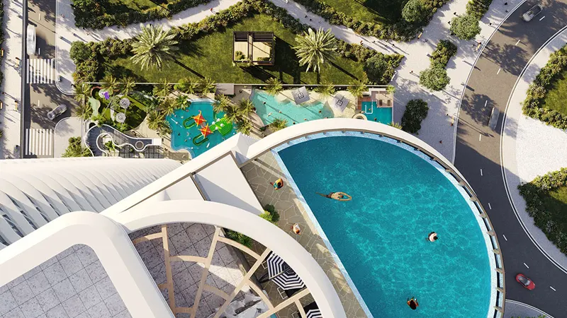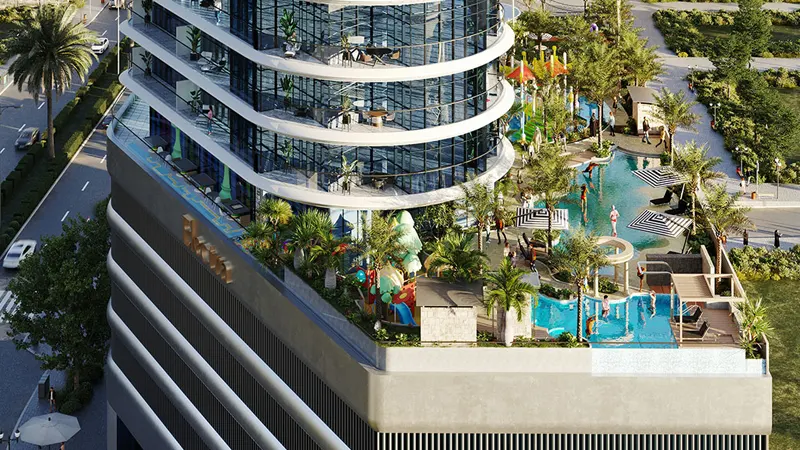 The amenities redefine the meaning of luxury living. The theme park-style amenity floor offers a plethora of leisure options, including a sky pool, waterpark, arcade, private cinema, and mini-golf. Whether unwinding by the poolside or hosting a movie night with friends, residents can indulge in a lifestyle of unparalleled comfort and entertainment.