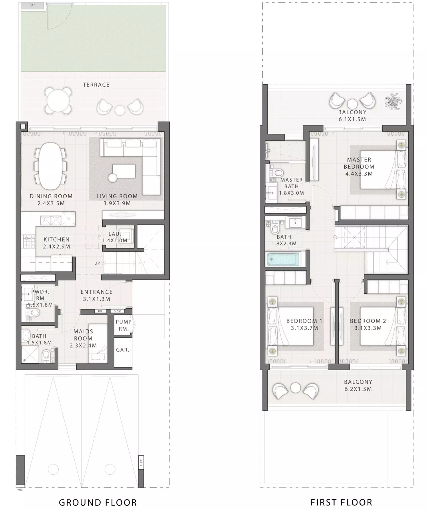 The floor plan size of the Elora townhouses ranges from 2,095 sq. ft to 2,608 sq. ft, whilst the average plot area varies between 1,485 sq. ft and 2,797 sq. ft. For the utmost comfort and convenience of occupants, the properties will come with a staff room, a store room, a terrace, a laundry room and a balcony. There are 2 architectural styles to choose from: Moon, which will have an alluring interplay of planes and masses, and Mysk with rich-tones and open corners.