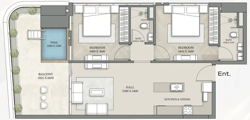 • 2 Bedrooms
