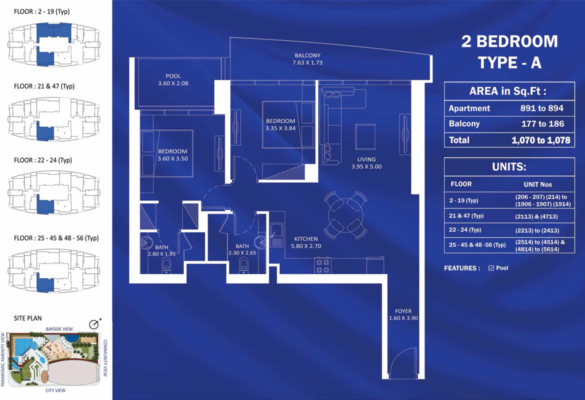 - two-bedroom apartments that are 1078 to 1177 square feet