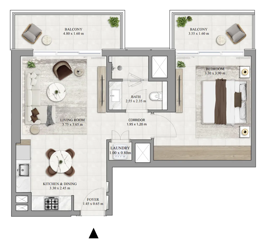 Inside the apartments, Greencrest showcases elegant interiors with contemporary finishes and a timeless design approach. The kitchens are designed to be practical and stylish, complemented by high-quality materials that enhance both durability and visual appeal. From the flooring to the fixtures, every detail is carefully selected to create a bright, refined, and welcoming home atmosphere.