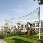 Each townhouse is designed with a focus on both functionality and style, providing a living space that caters to the needs of modern families. The sleek, contemporary facades blend seamlessly with the lush surroundings, creating a harmonious environment where luxury and nature coexist. With panoramic views through expansive windows and interiors that feature warm, earthy tones, these homes exude a sense of serenity and comfort. Residents can expect spacious living areas, modern kitchens, and well-appointed bedrooms, offering a perfect blend of sophistication and practicality.