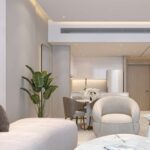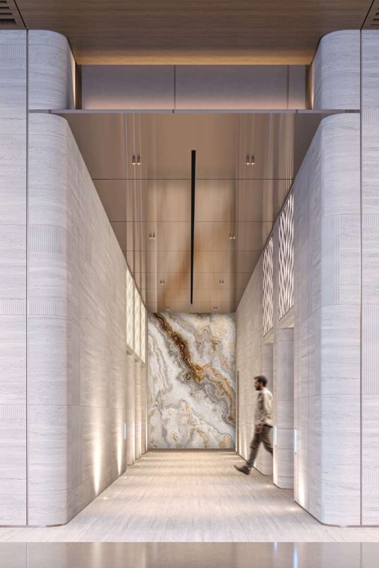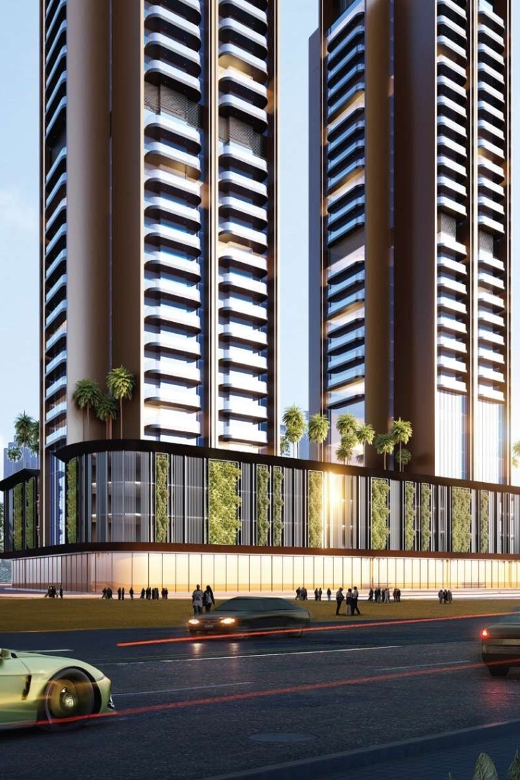 These twin towers are a visual delight characterised by their sleek, modern facades and the artistic symmetry they embody together. The central pool area not only connects the towers but also serves as a striking visual feature, setting the tone for the projects commitment to luxury and serenity. Each tower is a harmonious balance of form and function, with meticulously designed layouts and beautiful serene environment to entertain its guests and residents. The attention to detail in architecture extends to the shaded areas, Including the grand lobby that welcomes residents and visitors alike.