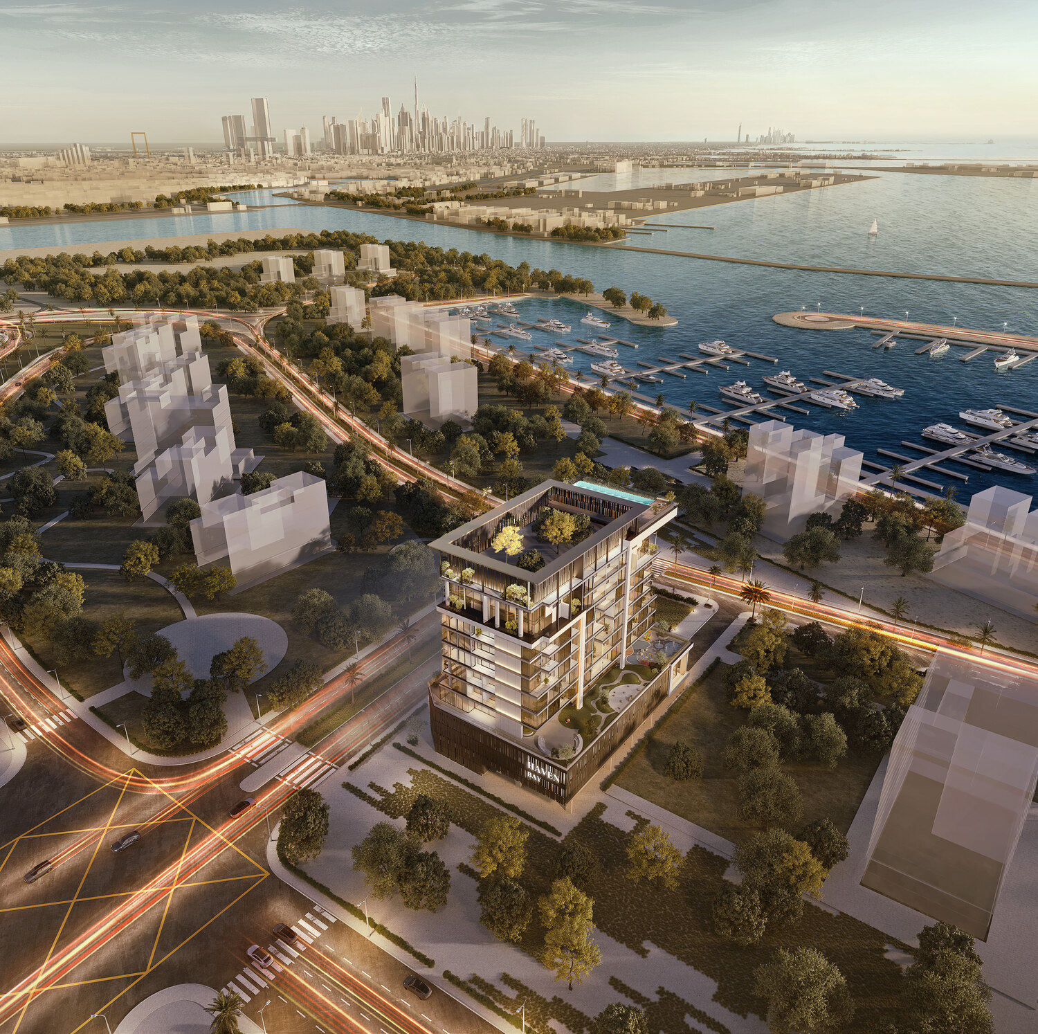 Situated within Dubai Islands, Haven Bay provides a panoramic view of the Arabian Gulf and is located strategically near various attractions of the main city. It's only 20 minutes away from Dubai International Airport for frequent travelers. Plus, the development is well-connected to major road networks, particularly Sheikh Zayed Road, so it becomes easy to reach Downtown Dubai, Dubai Marina, and other places of interest. The metro extension, due to come up in the near future, will further enhance its connectivity. Dubai Dolphinarium and Children's City are just 20 minutes away, while it takes a 30-40 minutes’ drive from the Burj Khalifa, Burj Al Arab, and Palm Jumeirah.