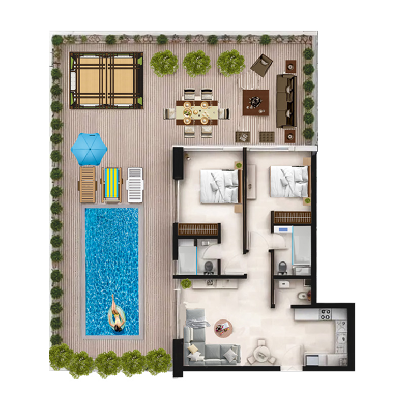 Heaven Views is an exceptional residential project that brings together elegance, modern design, and serene surroundings in one of Dubai's most desirable areas. The development offers a selection of thoughtfully designed units, including Studio, One-Bedroom, Two-Bedroom Apartment, and luxurious Two-Bedroom Apartments with private pools. Each unit is a masterpiece, boasting floor-to-ceiling windows, open-plan layouts, and stunning views of lush green spaces or the Dubai skyline.