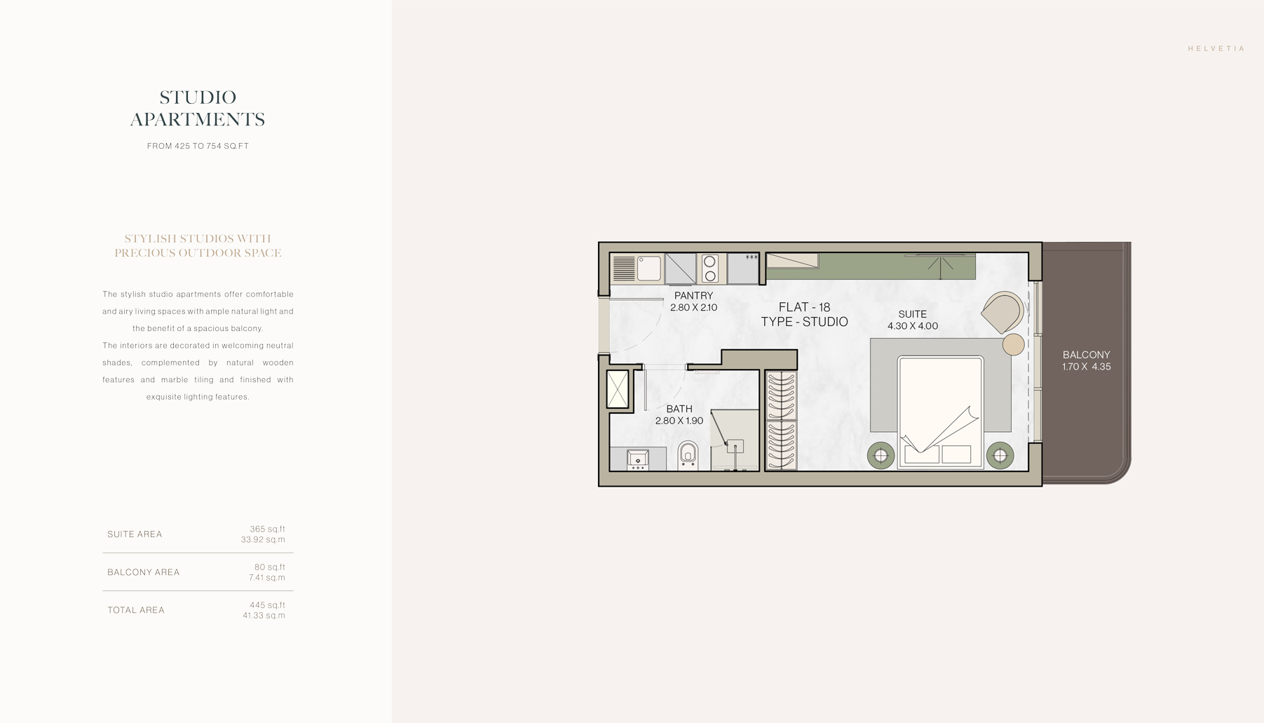 Helvetia Residences at JVC is the first-class residential marvel developed by DHG Properties offering premium designed studios, 1, 2 & 3-bedroom apartments. With landscaped green spaces, modern conveniences, and a serene village-like atmosphere, it provides residents with easy access to everything redefining the essence of contemporary living.