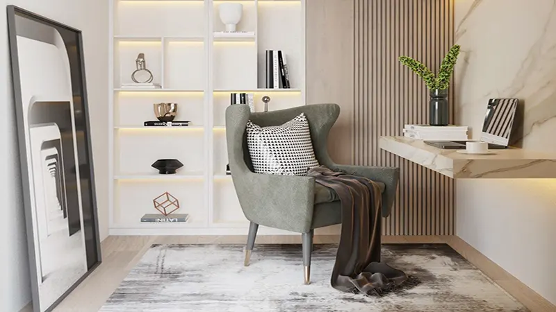From semi-furnished smart homes to private plunge pools and animal daycare facilities, every detail has been designed to ensure convenience, luxury, and comfort. The building also provides EV charging stations and visitor parking, ensuring that residents and guests alike have everything they need for a seamless living experience. Warm beige tones combine with serene blue hues to create a tranquil yet sophisticated atmosphere. This elegant blend of colors enhances the building's charm, giving it a unique and inviting aesthetic that stands out in Dubai’s skyline.