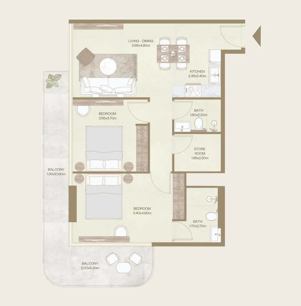 Interiors at Nuve by Zoya are fully furnished and inspired by modern Italian design, combining soft neutral tones, warm wood finishes, smooth stone surfaces, and subtle brushed gold accents. The kitchens are contemporary and functional, designed with quality cabinetry, elegant countertops, and integrated appliances that blend seamlessly into the living space. High-quality materials, refined finishes, and thoughtful detailing throughout each residence create a home that feels comfortable, stylish, and effortlessly sophisticated.
