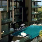 The vibrant community is enriched with a plethora of amenities that cater to every need. From a state-of-the-art gym to an infinity pool that seemingly merges with the azure sea, the facilities are designed to elevate the living experience. Additionally, residents can enjoy a variety of on-site conveniences such as a daycare, café, laundry, pharmacy, and gaming area, ensuring all daily necessities are met within the community.