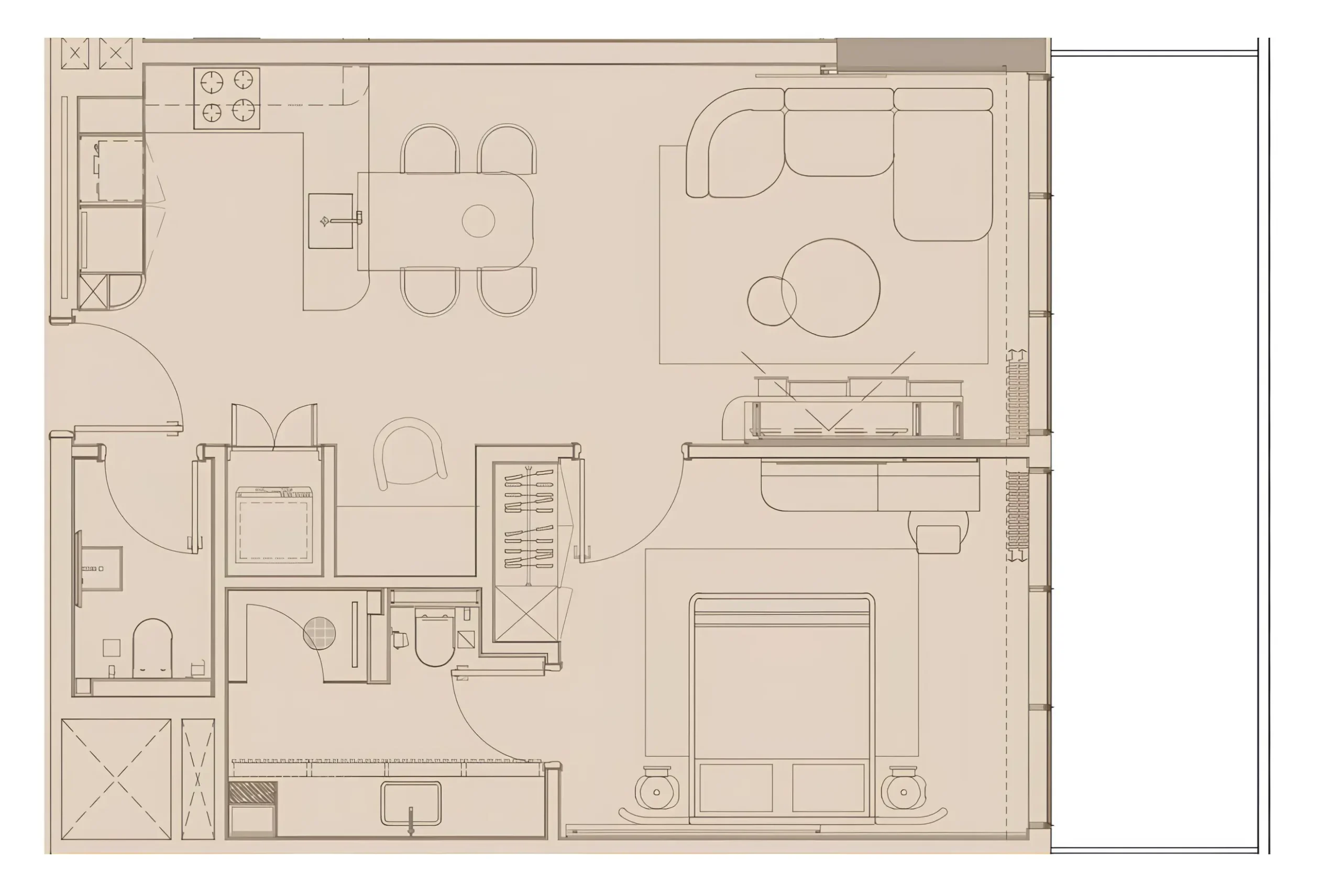 Inside, the residences are crafted to embody effortless sophistication. Fully furnished studios and apartments feature soaring ceilings, custom cabinetry, and expansive windows that flood the spaces with natural light. Each interior has been designed with precision and intention, blending functionality with refined aesthetics to create homes that feel both personal and inspiring.