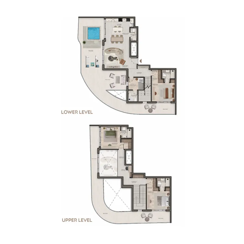 Beyond its remarkable architecture, Stax offers a world of amenities designed to enhance every aspect of modern life. Residents can unwind by the lagoon pool and sandy beach island, enjoy moments of relaxation in the luxury spa, or embrace wellness in the steam and sauna areas, yoga zones, and fitness studios both indoors and out. Families will appreciate the kids’ pools and play areas, while social and leisure spaces such as the cigar lounge, indoor cinema, and multipurpose hall bring people together in style. With jogging tracks, sport courts, and serene meditation areas, Stax redefines community living through sophistication, comfort, and connection.