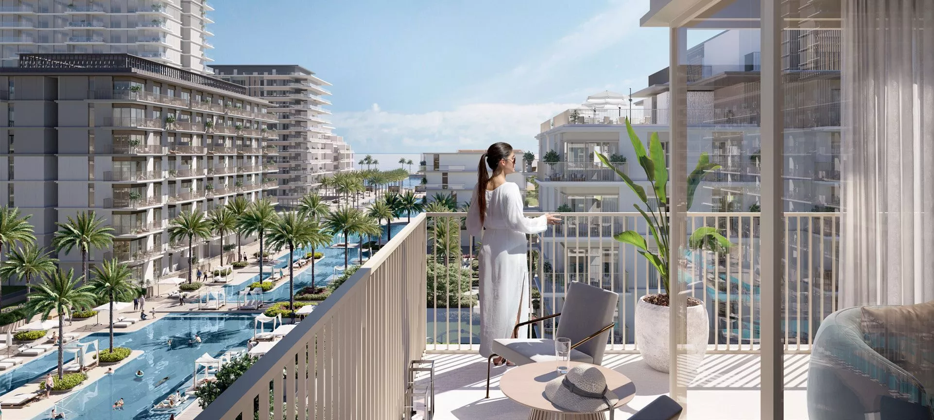 The size of the properties ranges from 765 sq. ft to 1,734 sq. ft. Each apartment is equipped with a private balcony overlooking the waterfront. There will be kitchen appliances and fitted wardrobes for the utmost comfort of the homeowners.