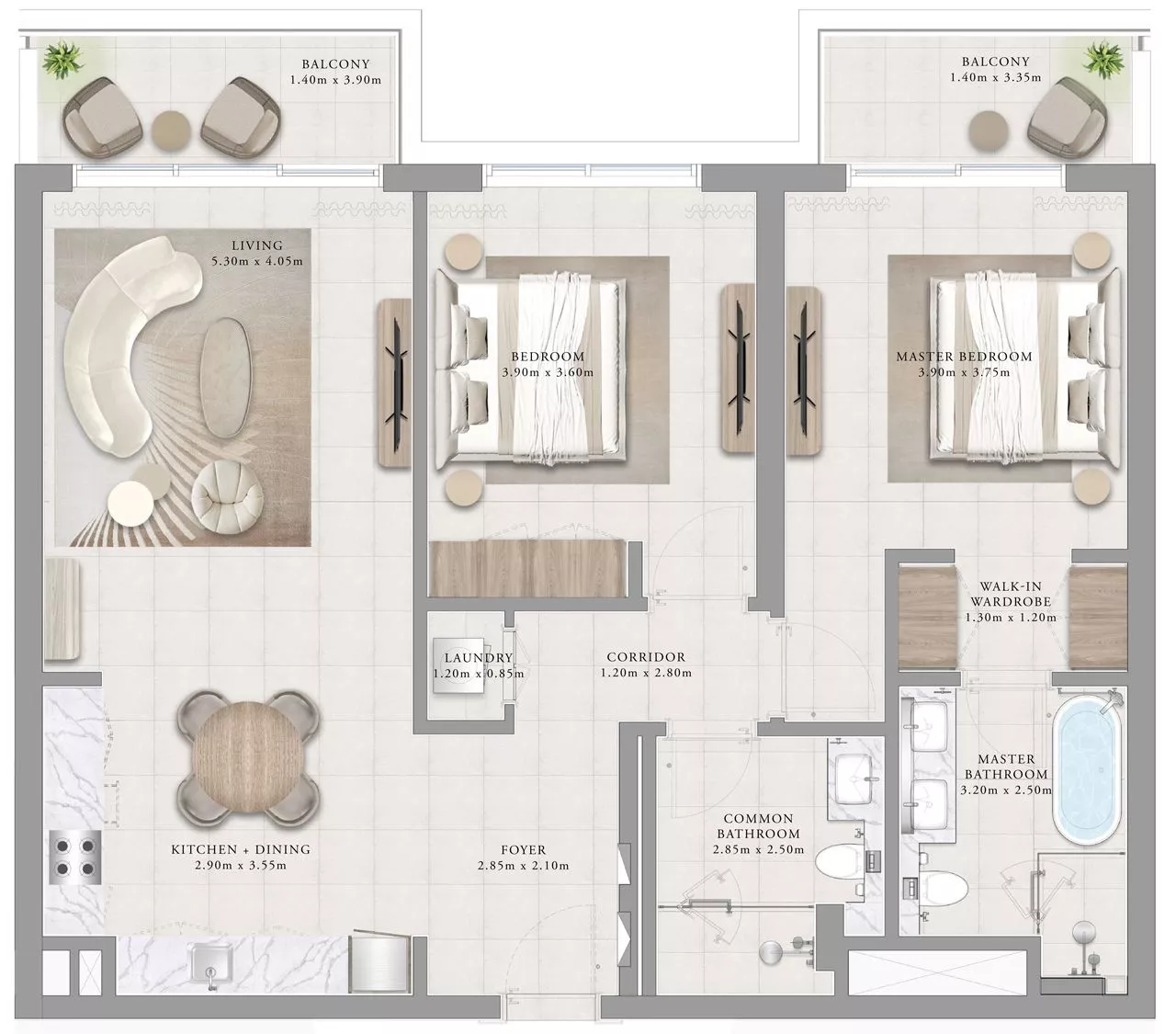 The size of the properties ranges from 765 sq. ft to 1,734 sq. ft. Each apartment is equipped with a private balcony overlooking the waterfront. There will be kitchen appliances and fitted wardrobes for the utmost comfort of the homeowners.