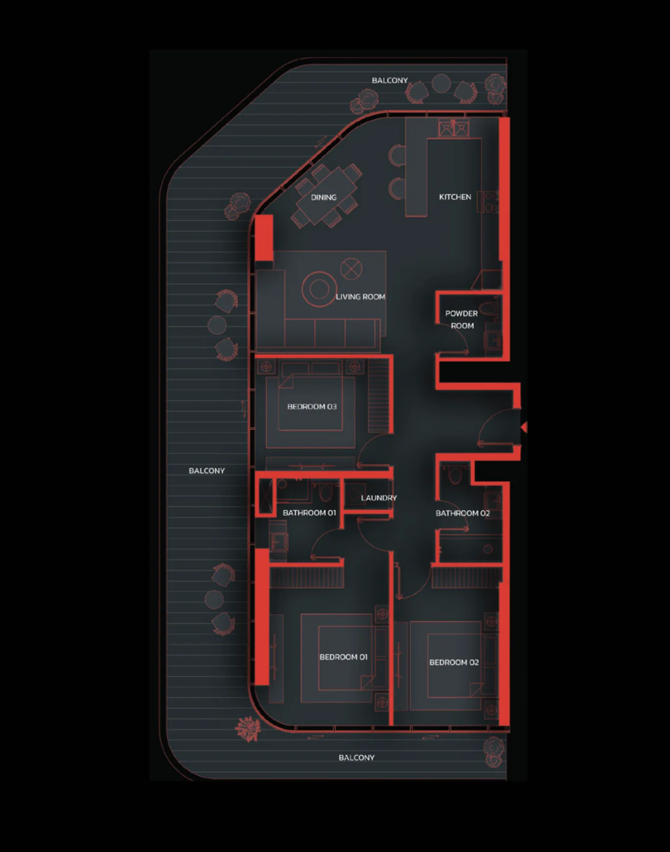 The residences are designed as an extension of the Tonino Lamborghini design language — confident, refined, and quietly expressive. Interiors feature flowing layouts that balance openness with intimate retreats, allowing living, dining, and private spaces to connect effortlessly. Warm neutral palettes, tactile materials, soft lighting, and meticulous detailing create an atmosphere of calm luxury, where comfort, craftsmanship, and clarity define everyday living in a setting shaped for both relaxation and refined hosting.