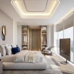 At the heart of the development lies a celebration of architectural brilliance and curated amenities. Expansive, light-filled living areas are framed by full-height, double-reflection thermo-glazed windows, offering panoramic views of the azure waters of the Arabian Gulf and the Dubai skyline. Premium finishes, including Dekton Marmorio surfaces, warm wood parquet flooring, and sleek oak grey veneer doors, create interiors that exude refinement. Italian-crafted kitchens by Snaidero feature sophisticated Laminam Diamond Cream countertops, complemented by Miele appliances and Quooker taps, ensuring every culinary experience is a masterpiece. Bespoke Gessi bathroom fittings add a touch of luxury, while Pianca wardrobes provide elegant storage solutions.