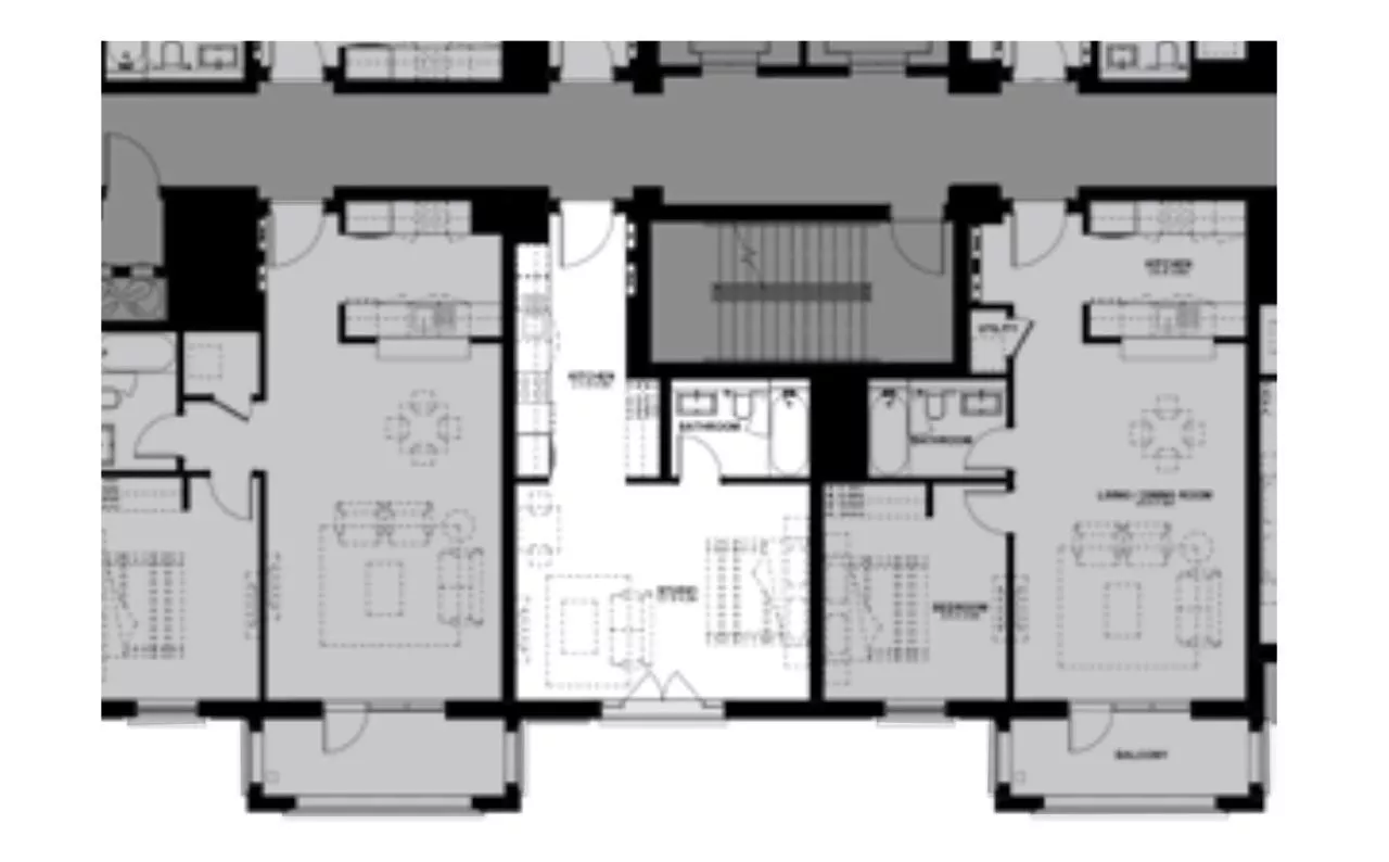 Souq Furnished Apartments features furnished studios and 1-bedroom apartments. Unfurnished 2-bedroom and 3-bedroom apartments are also available. The layout includes a staff room.